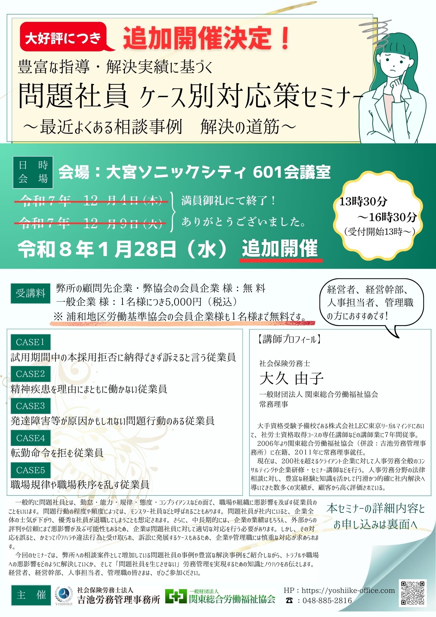 ~同一労働同一賃金(不合理な待遇差問題)実務対策セミナー~