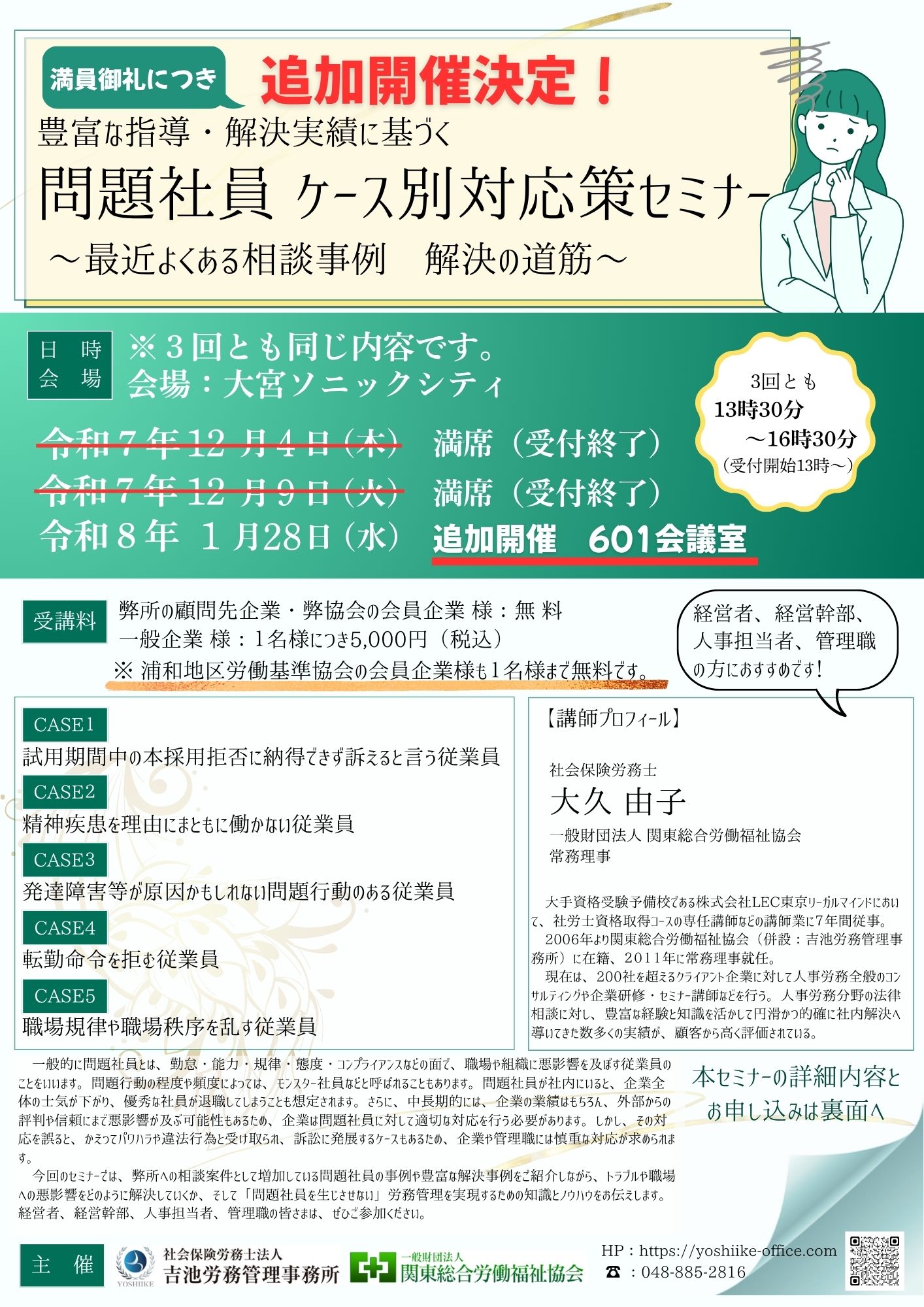 ~同一労働同一賃金(不合理な待遇差問題)実務対策セミナー~